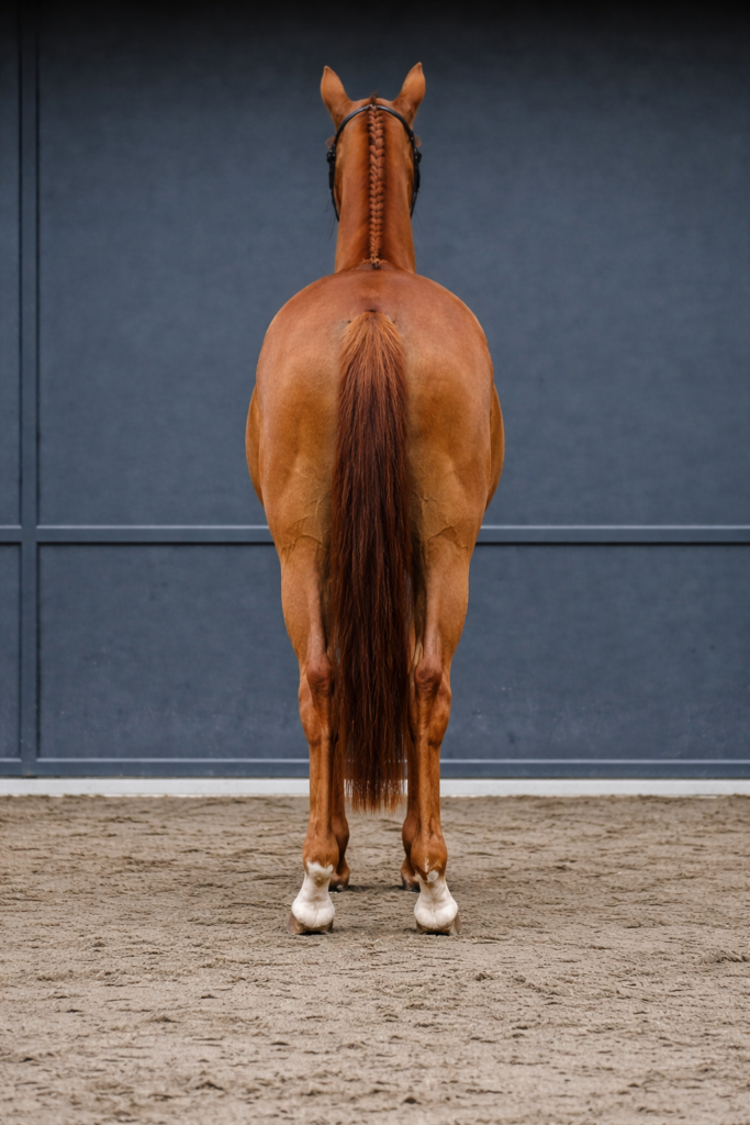 Photographiez le cheval de face et de derrière, en cadrant principalement le haut du corps. Ces angles permettent d’évaluer la symétrie des épaules et du bassin, ainsi que la largeur et la musculature de l’avant-main et de l’arrière-main, éléments qui influencent la position de la selle.