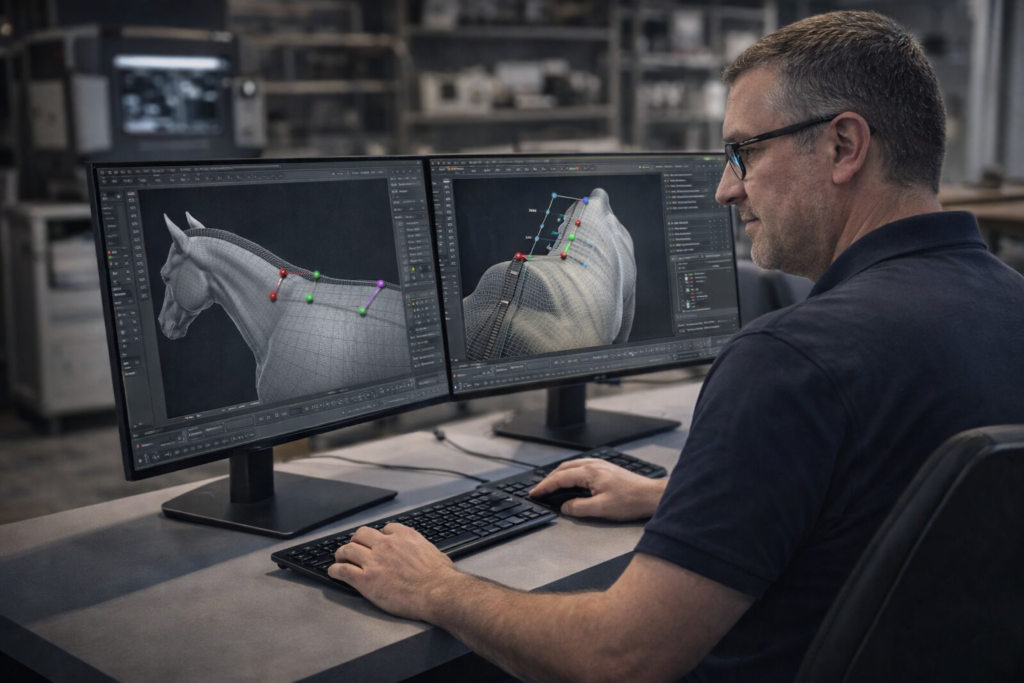 Notre méthode s’applique à tous types d’arçons, quelle que soit la discipline équestre. La précision des données recueillies est déterminante pour garantir un ajustement optimal, préserver le confort du cheval et soutenir la performance du cavalier.